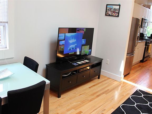 Top-floor apartment with high ceiling, a skylight, windows in every room and a lot of natural light. In unit washer, dryer, dishwasher and central AC. Very quiet and safe neighborhood. 3 minutes walk to the bus stations and only one stop away (13 minutes) from Manhattan.