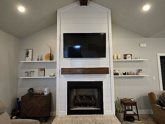 Spacious Living Area: The open floor plan creates a welcoming space perfect for entertaining or family gatherings, centered around a cozy gas fireplace.