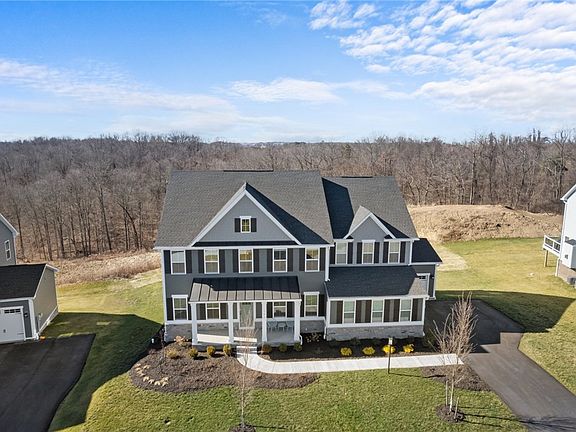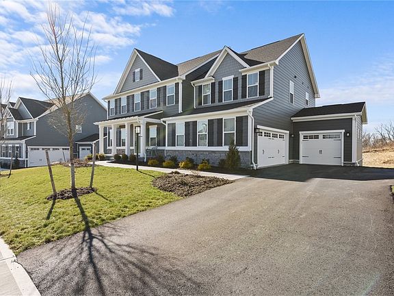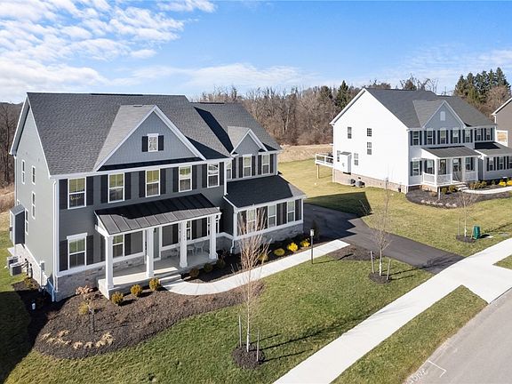 room, with potential for a 6th bedroom, 5th full bath, and theater room. The main floor offers a spacious living room with custom windows and fireplace, a stylish kitchen with contrasting quartz countertops, custom tile backsplash, and pantry, plus a dining room, office/flex space, and 5th bed/bath. The kitchen even has space for a future prep kitchen! The spacious primary suite features a sitting area, dual walk-in closets, and oversized shower. Enjoy the finished walkout basement with rec room and a backyard oasis with covered deck, oversized patio, and expansive yard. No neighbors behind and stunning views! Construction underway for the neighborhood pool and clubhouse Enjoy the convenience of a new home without the wait or stress of a build! Only minutes from all the amentities Moon and Robinson offer!