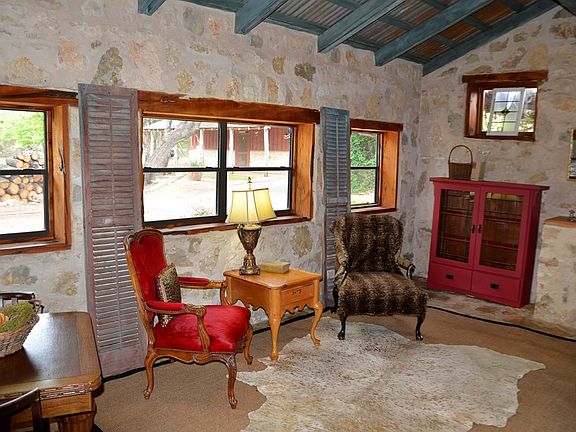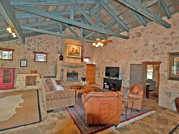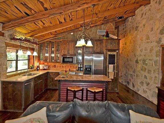 Oh where to begin! AMAZING opportunity to purchase this stunning property located between iconic Marquardt & Joshua Creek Ranches not only offers unparalleled character & charm, but also a serious income-generating potential! Beautiful & eclectic rock home w/ 18 inch walls, exposed beamed ceilings, huge rock fireplace w/ built-in grill, gorgeous remodeled kitchen, 384 SF cabin that generates serious revenue, outdoor pavilion, cabana-kitchen, bathhouse, 2 private hot tubs, Fire Pits, established rental income, amazing views, privacy & setting. Very unique opportunity in the Texas Hill Country!