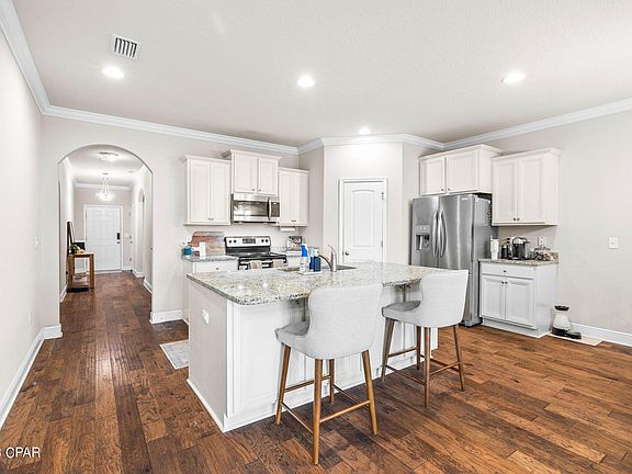 Discover Hammock Bay in this gorgeous Cali floor plan. Located on a large corner lot within Central Park, 106 Mary Ellen Way is 1/2 mile to all the amenities and features a 4bed/2bath split floor plan. The warmth of the engineered hardwood flooring, high ceilings, and crown molding greet you as you enter the home. The kitchen features granite countertops, recessed panel cabinets, stainless steel appliances, and a large center island. The open layout in the main living areas makes entertaining or keeping an eye on the little ones a breeze. In the master ensuite, you'll find a spacious bedroom and a large bathroom with a double vanity, tub, tiled shower, and generous walk-in closet. Best yet, the seller is offering $5k towards buyer's closing costs to help buy down the interest rate.
