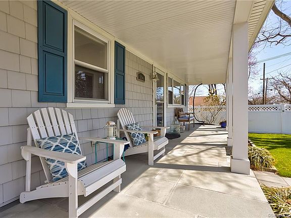 Steps to the water or walk to Cove Island Park, this gem is located by the Long Island Sound and the Darien border. Enter the updated 3 bedroom cape via the large welcoming front porch. Airy and bright with lots of natural light, the first floor has new interior doors and a gorgeous fireplace with a reclaimed wood wall and floating mantel. The kitchen has new Silestone counters over cherry cabinets and stainless steel appliances. A formal dining room has been opened up with new sliders to the back garden. Two more bedrooms and an updated full bath complete the main floor. Upstairs, the master bedroom suite boasts views of the Sound and has a huge walk in closet and newly renovated bathroom. On the lower level you will find an office/extra room and a roomy den which provide additional living space. (please note: Wine Cooler is excluded). AC is provided by the 2 ductless units, one upstairs and one on the main floor. Use the new sliders in the dining room to step onto the new charming balcony where you can sit and view the LI Sound or walk out to the manicured yard and new stone patio. A huge detached 2 car garage is wired for your electric car. 1/2 mile to Cove Islands 83 acre park, and less than 2 miles to Cummings Beach Park West Beach, Chelsea Piers, and both Stamford and Noroton Heights train stations. Flood insurance is $2500/year. Well McLain gas furnace (2008) and well McLain hot water tank (2018). See feature sheet for the numerous updates.