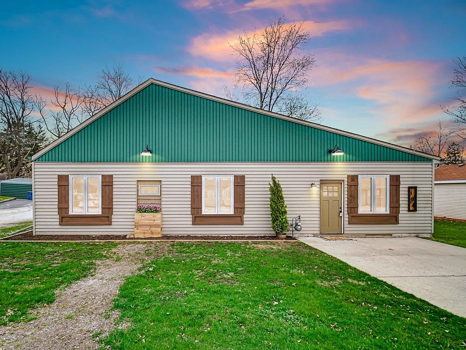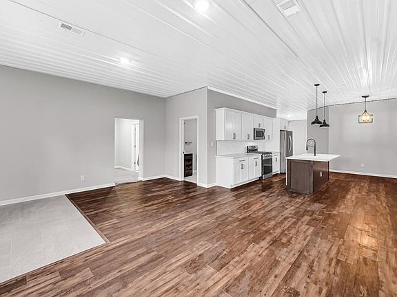 This open concept ranch with a split bedroom design is move in readyInterior is beautifully remodeled Brand New Kitchen, includes brand new 4 piece stainless steel appliance package, island and farm sink All new baths, tilework, all flooring, trim work, doors, light fixtures, drywall, paint, plumbing, furnace and central air.All of todays color and decor with a touch of the industrial look.High ceilings Two living areas, one off the split bedroom.Over sized garage with plenty of storage. Garage has a gas line, venting and is wired for an overhead furnace.