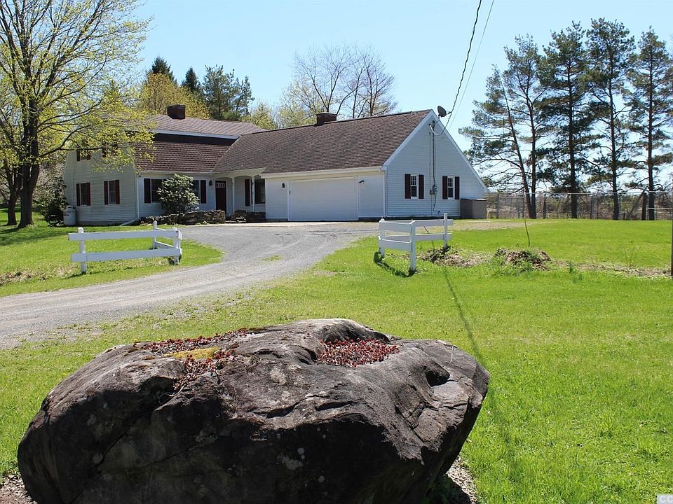 This is Country Life! Your own mini Ponderosa! Spacious 3 or 4 bedroom Gambrel, 2 1/2 baths, wide board floors, 2 masonry fireplaces, full basement and enclosed porch. Beautiful 5+ acre, setting of green pastures, small pond, babbling brook and lovely trees. The barn has 3 or 4 stalls, an equipment area, loft, water and electric. Bring the horse, build a chicken house, kick the soccer ball. Less than 10 minutes to Chatham Village, Kinderhook, or Main St Valatie.