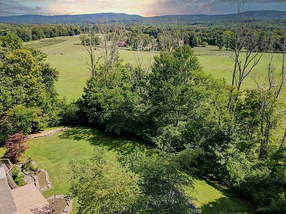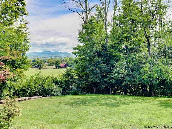 With sweeping views of Saunderskill farmland, Mohonk Mountain House and the Shawangunk Ridge this private four bedroom/three bathroom home affords beautiful, ever-changing vistas with the passing of each season. Cathedral pine ceilings and floor-to-ceiling stone accent create a warm and inviting atmosphere for the main living area. A woodstove serves as a secondary heat source for cozy winter days. This is a perfect B&B or Air B&B layout with two master suites on the first floor. The main master bedroom features French doors with deck access, three walk-in closets and a master bathroom with dual vanities on opposite sides of the bathroom, private shower and toilet room and a Jacuzzi tub with plenty of windows overlooking the private front yard. On the other side of the house is the second master suite with a bay window, two closets and a full bathroom. Work from home - the home office is nicely separated from the rest of the house offering a private workspace. Rounding out the first floor is a separate living room, half bath, and laundry room. The second floor features two sizeable bedrooms, full bathroom and a grand hallway balcony overlooking the great room. The lower level is completed by a three-car drive-under garage, a mudroom, a half bath, and a large basement waiting to be transformed. The spacious back deck has an awning for hot summer days, is hot tub ready, and the afore mentioned mountain views with breathtaking sunrises. Walking and ATV trails throughout the property lead you the 700+ feet of frontage on the swimmable Rochester Creek. Listen to the waterfall while picnicking and swimming. A different path will lead you through the woods to the yoga, wine or outdoor dining deck and firepit. With 14+ acres, this property allows for peace and quiet, a close proximity to nature, and a true countryside experience. Minutes to Route 209, Saunderskill Farms, Kelder Farm, Arrowood Brewery, Westwind Orchard and thousands of acres of hiking, biking and rock climbing. All this just 85 miles from GW bridge, 1.5 hours.