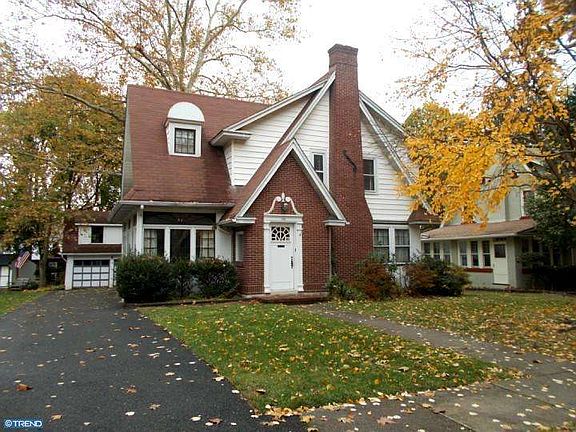 Home Sweet Home! This home exudes Riverton Charm! Located on one the nicest tree lined streets in Riverton with very little traffic, this home is unique and a rare find. The fine features of this home include a two car two story garage, a beautiful sun room, surprisingly large rooms including a 22 x 15 living room with wood burning fireplace, great closets and tons of storage apace, original doors and hardware, first floor laundry and gorgeous hardwood floors inlaid with Walnut. Make this awesome home your own by bringing your decorating ideas and adding your own Style. The updating needed is reflected in the price. Enjoy a short walk to the golf course, parks, shops, light rail, and scenic Delaware River.
