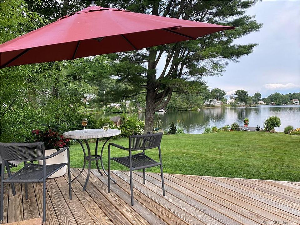Serenity awaits you at this picturesque Lake House on Hitchcock Lake in Wolcott, CT. Beautifully appointed Ranch home with three bedrooms, two full and one half baths and a large one car garage. Tastefully landscaped yard with an amazing expansive deck is perfect for entertaining , viewing nature or relaxing. The drive thru garage allows access to your boat launch and 20 x 10 dock. Act fast to secure this wonderful property.