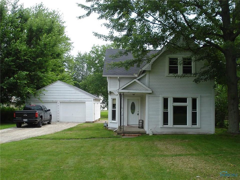 Nice sized 4 bedroom house with 2 car garage on a large lot in Liberty Center. Updates included floor covering, paint, light fixtures, windows, garage siding, and garage roof. Large 2nd floor landing could be used as a second living space.