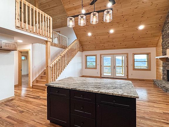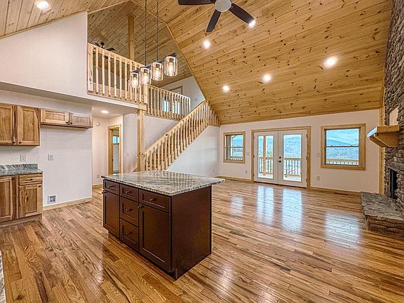Location, location, location! This well-built, brand-new 2 bedroom, 2.5 bath D-log siding chalet is fully completed and ready to go. The great room is a true showstopper, featuring a floor-to-ceiling stacked stone fireplace, tongue-and-groove ceilings, and beautiful wood floors. The upscale kitchen offers an island breakfast bar, upgraded granite countertops, and custom cabinetry—perfect for everyday living or entertaining. Two true primary suites, one on each level, provide flexible living options and private retreats for you and your guests. Enjoy outdoor living at its finest with a covered deck off the great room, porch access from the main floor bedroom, and a private balcony from the upstairs suite—each offering absolutely breathtaking mountain and valley views. The property also offers room for gardening beds and a firepit area, making it easy to create your ideal outdoor gathering space. Additional upgrades include walk-in tile showers, metal hand railings, and a top-of-the-line standing seam metal roof. Ideally located just minutes from downtown Murphy, the hospital, community college, and the John C. Campbell Folk School, this stunning new build combines quality craftsmanship, comfort, and convenience in one exceptional mountain home.