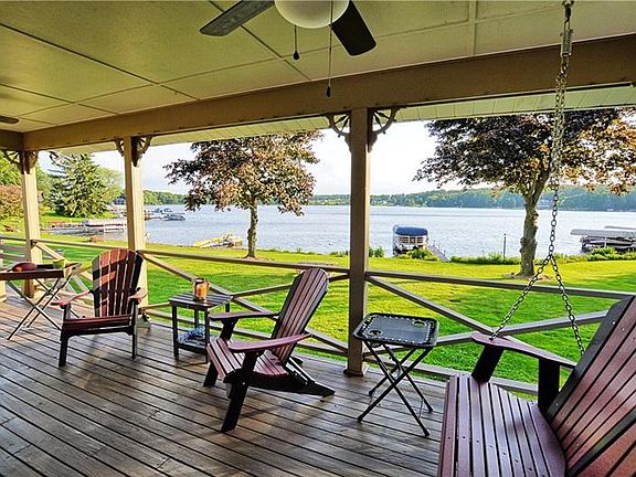 If you have been searching for that perfect lakefront cottage, this is it! This three bedroom, 2 bath home has an incredible view and a perfect position on the water. The open and bright main level boasts a large kitchen and living room with log burning fireplace. Brand new kitchen with granite counter tops. Both the kitchen and living room have access to the large, covered deck with built in seating. The three bedrooms and a full bath are on the second level. The large family room is in the lower level and also has a log burning fireplace. There are so many memories just waiting to be made at this wonderful Lake Latonka home.