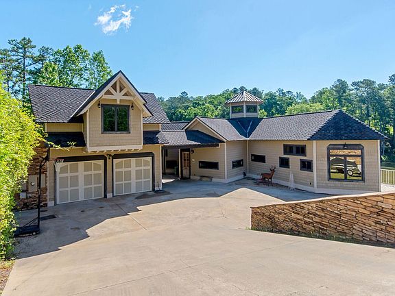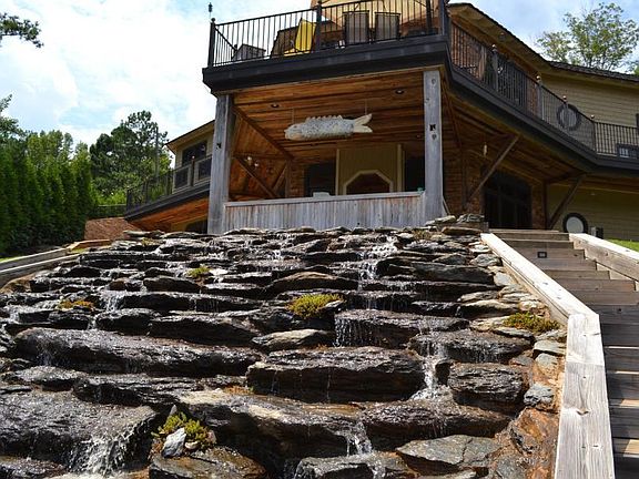 Stunning Lake Martin custom built home with incredible detail throughout! Spectacular flowing waterfall from the covered patio down to the lake! 210 FEET OF SHORELINE with a seawall in place! Main floor offers a HUGE open family room with fireplace, 2 bedrooms, 2 bathrooms, kitchen, office, and laundry room. The walkout level includes 2 additional bedrooms one of which has 8 built in bunks, 2 bathrooms, a media room, gourmet kitchen, and another family room with fireplace. This level opens to an incredible outdoor patio area with a third fireplace and plenty of space to entertain. Some of the best fishing on Lake Martin can be done from the expansive dock area that includes two boat slips, boat lift, and a floating dock. You can feel the quality of this magnificent property. A MUST SEE!