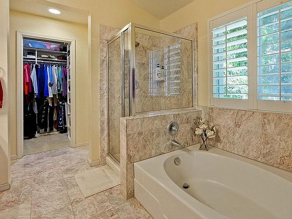 - Bathroom: Shower over Tub - 1, Tub in Master Bedroom, Double Sinks, Marble, Master - Stall Shower(s), Half on Ground Floor