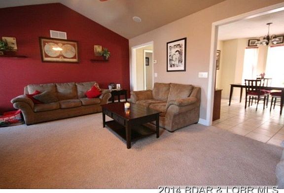 Nice, clean home on level lot in quiet neighborhood in Camdenton. Enjoy the convenience of city water and city sewer. Spacious kitchen with tile floor and breakfast bar. Inviting living room with cozy fireplace, sound system and vaulted ceiling. Spacious master suite with walk-in closet, jetted tub and walk-in shower. Convenient one-level living. Security system is available, just not hooked up at the current time. Large deck is great for outdoor living space. Yard is nicely landscaped. Roof recently replaced.