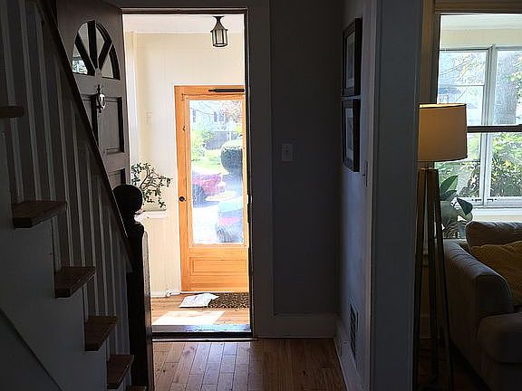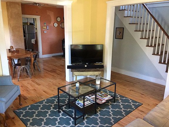 3 beds 2 baths home with open floor plan. Hardwood floors. Deck overlooking private garden, fenced yard and shed. A pellet stove to add a nice cozy ambiance during the colder months, lots of windows to create a nice cross breeze that keeps the house cool in the summer months without even needing an air conditioner. There are flowers, shrubbery and trees blooming all throughout the early spring to late fall that keep encouraging humming birds and butterflies which adds to the private backyard space, even your very own peach tree in front of the shed! There is also a newly rotor tiled organic garden ready for veggies or more flowers to be planted!