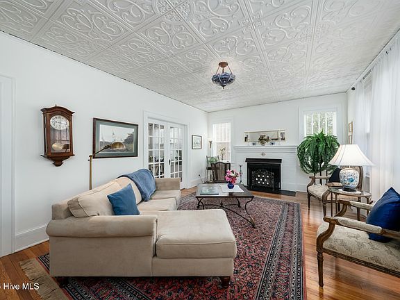 Step inside and fall in love with the preserved character throughout—original glass doorknobs, a nostalgic phone nook, and timeless details that make this home truly special. The main level is full of charm starting with an inviting living room centered around a fireplace, beautiful ceilings that offer lovely details. French doors lead you to the dining space, while an updated downstairs bathroom adds modern comfort. Three bedrooms downstairs offer flexibility and functionality with tons of great light.