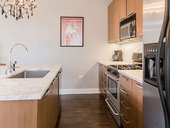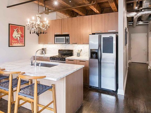 This large 1brm, 1.5 bath soft loft now available for April 1 occupancy! Phenomenal location in the heart of hot, cool and happening West Loop! Intimate, boutique, elevator, professionally managed building offers secure entry with intercom, cameras, fobs and gated parking (one parking space included in rent!) makes you feel secure, cozy and right at home! This 5th floor unit with approx. 1000 sf of space features all hardwood floors, 12 foot ceilings, wood beams and exposed brick! Open floor plan with a modern kitchen, marble counters, stainless steel appliances and large sliding door (plenty of natural, morning sunlight) to the east facing balcony (grilling allowed)! Large bedroom with ample room for a king size bed, double closets and on suite bath! Spacious, private primary bathroom has marble floors/tub surround, jacuzzi tub and double sink! Unique, additional bath for guests just off the living room! Unit comes with a unit washer/dryer, new A/C! Unit is pet friendly! Situated on a quiet, tree lined street within steps to Randolph, Madison, Fulton Market and Greek Town that offer plenty of dining (Michellin stars restaurants!), entertaining (Taste of Randolph Fest, Greek Fest, Art Fest and more!) shopping (Whole Foods, West Loop Market, Mariano's, Patagonia, Lululemon) and nightlife options (Nobu, Hoxton Hotels, Black Barrel and other bars/clubs) This home is a short distance to 90/94, I-290, public transportation, L train, Metra, IL Medical District, UIC, Rush Hospital and Fulton Labs. Home to Google, McDonald's, Pinterest, Rocketmiles, Mondelez International, Quaker's Oats, Tag Oral Dental Care Center and more, West Loop is the place to live, work and play!Walk to Skinner Park, Whitney Young Sport Complex, Union Park, MB Park that feature playgrounds, dog parks, running track, football/baseball/soccer fields, tennis, basketball and pickle ball courts! Run on River Walk and Lake Michigan Lakefront! Network and play at Soho House, East Bank Club or Ground Up Coffee & Bites! Can show at any time with a 24 hr notice. See it...you will love it! Tenant pays all utilities, including internet.