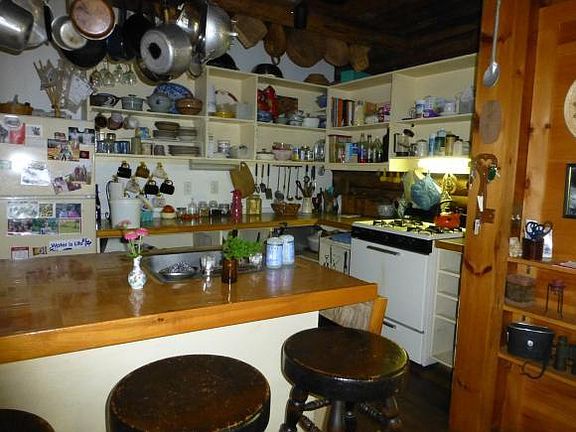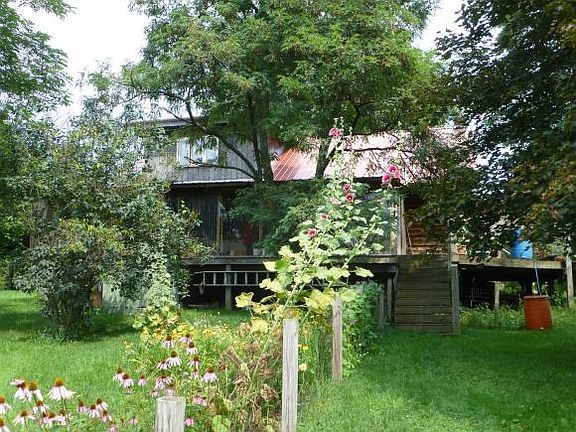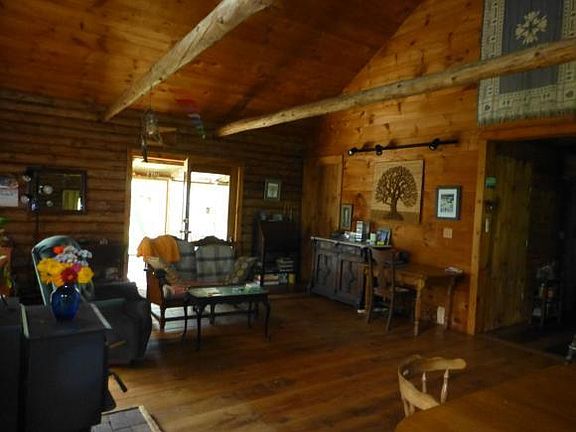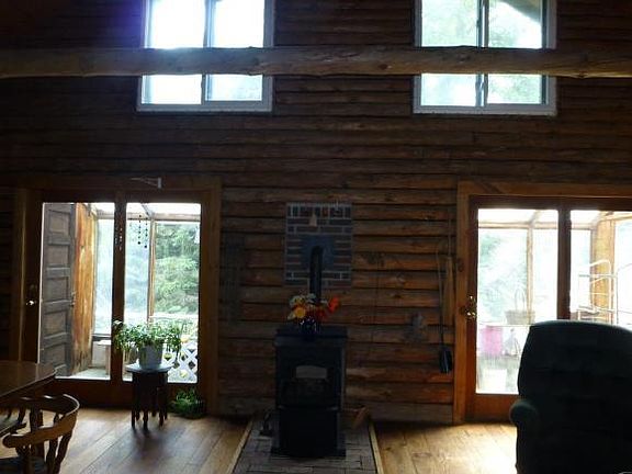 This spacious log home sits on two private acres with gorgeous organic gardens, westerly views and sunsets! Owner-built in 1991 with oak and cherry floors, pellet stove for heat, open kitchen/living/dining w/ cathedral ceilings, and lots of windows, porches and decks for access to outdoors! A nature-loveras paradise for living the simple life! The propertyas uniqueness, need for some TLC, and composting toilet will keep it from qualifying for a traditional mortgage. Price reflects needed upgrades.