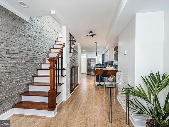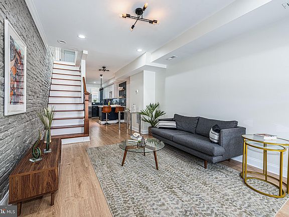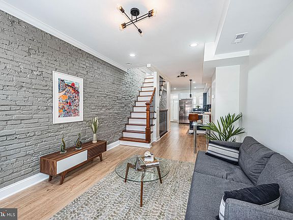 CONTEMPORARY ELEGANCE RADIATES THROUGHOUT THIS PATTERSON PARK RENOVATION WITH 3 FINISHED LEVELS AND OFF STREET PARKING! Features include an open floor plan with an inviting living room and dining area with wood flooring and exposed brick, a designer kitchen with two tone cabinetry, ss appliances, & Quartz counters, a main level mud room, an upper level Primary bedroom suite with exposed brick and full bath, and a 2nd bedroom with a hall bath, a finished basement with a 3rd bedroom, a 2nd level rear deck that's perfect for entertaining, and easy off street parking! Conveniently located close to Patterson Park, restaurants, and Johns Hopkins Hospital - pack your bags and move right in!