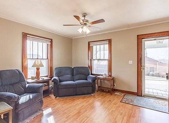 Checkout this cute (3-bedroom...1-bath) 1.5 story/Bungalow home w/virtually maintenance free vinyl siding & storm windows! Freshly painted interior, new carpet, ceiling fans, newer laminate flooring, & water heater! The kitchen appliances and washer & dryer stay! Enjoy the large covered front porch/deck, large side deck, a 12x12 outbuilding, partial fenced backyard and more! Unfinished basement with inside entrance is great for storage. Add your personal touches and this home would be perfect!