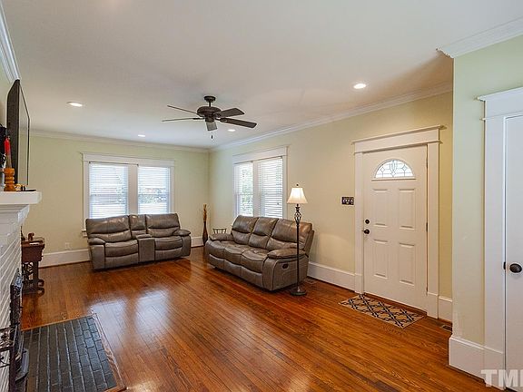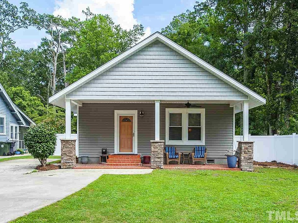 Beautifully renovated 2018! Such great curb appeal and a full acre lot! 2 bed 1 bath Bungalow in a quiet area of downtown Goldsboro. Convenient to everything! New roof, tankless gas water heater, furnace, refinished hardwoods, paint, carpet, windows, siding, wiring, plumbing, 2 level deck in 2020. Fenced yard, large storage building, vapor barrier and covered, brick front porch with outside fan and custom built steps. Spacious dining and family rooms, large bedrooms, gorgeous tile bath and a huge kitchen!