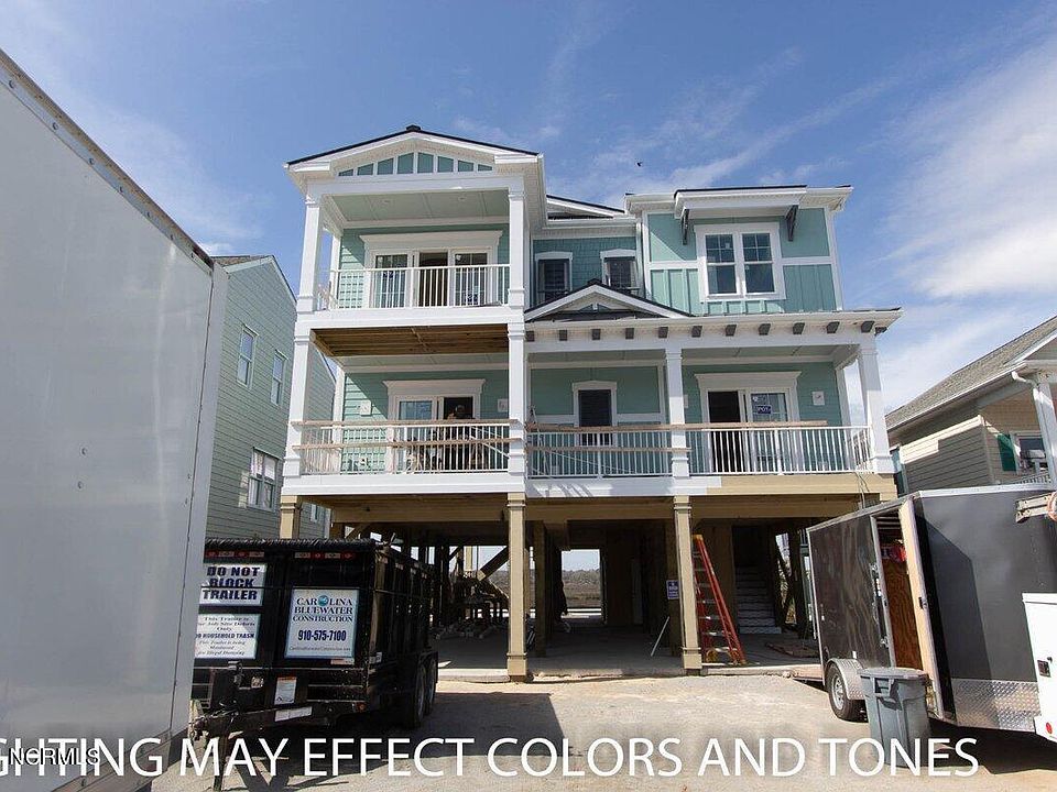 New 3,208 SqFt Custom Home by Carolina Bluewater Construction to be completed by May 24, 2024. New navy style vinyl bulkhead to extend rear yard, heated swimming pool, elevator and direct beach access at the end of the street. Wonderful march/waterway and sunset views from rear porches. Easy exterior maintenance with standing seam metal roof, composite decking, James Hardie siding and aluminum powder coated handrails.