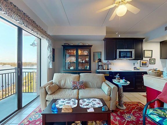 LOCATION WITH AMAZING VIEW! 8th floor one bedroom condo in 9-story hi-rise with fabulous view of that lazy hazy Cape Fear River! Two elevators, security entrance, lobby with po boxes. The condo has been owner occupied and not a rental. Owners made major upgrades a few years ago. Lovely black shaker cabinets, easy pullout dishwasher, convection oven, quartz countertops, plumbing and electrical overhaul including new kitchen lighting. Bathroom has quartz counter tops, new fixtures and lighting. A tankless water heater was installed in '23. Remote controlled shades over the large river view sliding glass door leading to the balcony. Popcorn ceiling was removed and rehabbed to create a smooth ceiling surface. Location is perfect for shopping, restaurants, coffee shops and pubs. The 1.75 mile riverwalk along the scenic river is perfect for exercise and fresh air. One owner parking is behind the building, unassigned and monitored by license recognition. Unit can be rented short or long term for rental income. Enjoy the Historical Downtown experience.