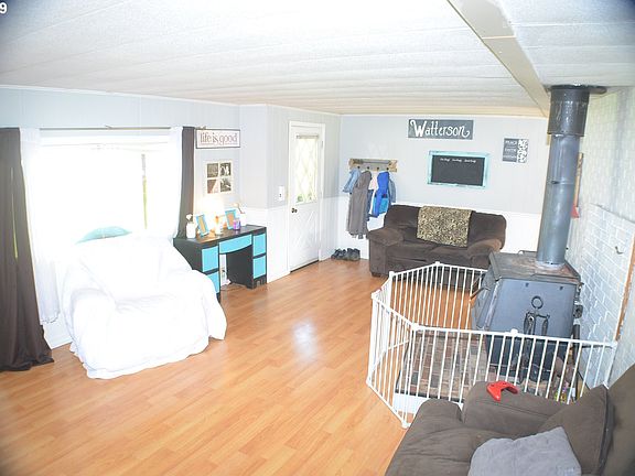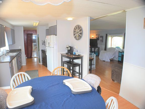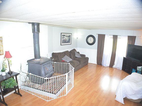 Great location across from 7th Street. 1974 Skyline MH, 1,344 sq ft, 3 bedrooms, 2 bathrooms with true master suite w/walk in closet.Laminate flooring throughout most of home. Large living room with lots of natural light. All the windows have been upgraded to vinyl. 17x24 attached garage, 8x25 covered deck, 12x56 back deck and multiple outbuildings. Underground sprinklers in backyard with irrigation pump. Room for a garden. .33 acre lot