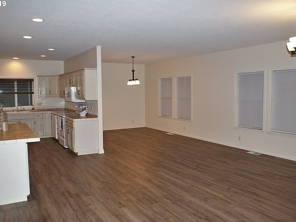 Lovely wrap around front porch with all main floor living on sloped corner lot in newer neighborhood culdesac. Great room design with 3 bedrooms, 2 full and 1 half bath. Master suite with private deck. Newly updated with washed-wood look flooring, new paint, light fixtures, etc. Extra large/deep garage attached with RV parking and shop option. Lots of storage in this lower level garage with an RV parking pad alongside.