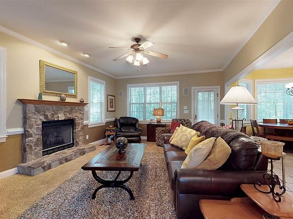 A rocking chair front porch welcomes you to this charming traditional home! Enter into a spacious fireside living room that opens to the kitchen featuring ample cabinet storage, tile backsplash, & island w/ breakfast bar seating. Private master retreat offers ensuite bath w/ garden soaking tub, dual sink vanity. Upstairs bonus room could be rec room/gym/private office/anything to fit your needs! Covered back porch is ideal for relaxing as you overlook the beautiful, private & shaded backyard!