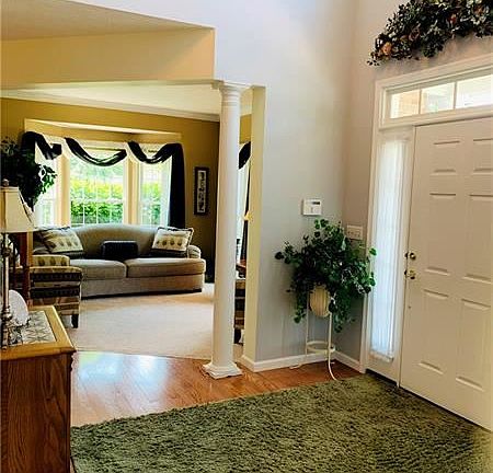 Live luxuriously in this architecturally appealing 4BR/2.5ba airy brick transitional revealing an array of stunning spaces and one-of-a-kind appointments. Soaring sundrenched foyer with Paladian-illumination, traversing staircase, and open balcony dramatically greets and promptly transitions to the sprawling fireplace-anchored great room with a 9' wall of transom-adorned windows presenting uninterrupted views of lush tree-lined semiprivacy. Upscale gourmet-styled cherry kitchen underscored in rich-hued hardwoods and accented with inlayed natural stone backsplash features abundant extended-height cabinetry, large serving/prep island, and striking glass-encircled cathedraled breakfast area/morning room with skylights and glass-door access to expansive deck with intimate corner gazebo. Concurrent pillared formal LR & DR, spacious trayed MBR, sensationally sized finLL complete w/game room, media area, and tucked office. In immediate proximity to coveted school district and interstates.