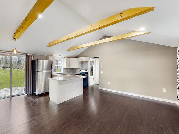 INCREDIBLE LAKEVIEWS & ONE -LE VEL-LIVING AT ITS FINEST w/ THIS NEWLY RENOVATED 3 BR/1 BATH RANCH HOME ON A CRAWLSPACE w/ A LARGE FRONT DECK OVERLOOKING THE LAKE ON .39 ACRE FULLY CLEARED & WELL-KEPT CORNER LOT IN DINGMANS FERRY, PALocated in-between 2 lakes, this wonderful property features a large backyard w/ a beautiful wraparound bluestone patio w/ sliding glass door back entrance as well as stacked bluestone retaining walls running along the driveway & front of the home.The inside features hw floors & elect bb heat throughout; an open floorplan w/ cathedral wood-beamed ceilings; A beautiful, full ultra-modern, & tiled bathroom; The kitchen comes w/ custom cabinetry, like-new black S/S appls, & granite cntps incl. a large eat-at bar island; 3 spacious BRs & a stacked washer & dryer, Beds Description: 2+Bed1st, Baths: 1 Bath Level 1, Eating Area: Ultra Modern KT, Eating Area: Dining Area, Eating Area: Modern KT