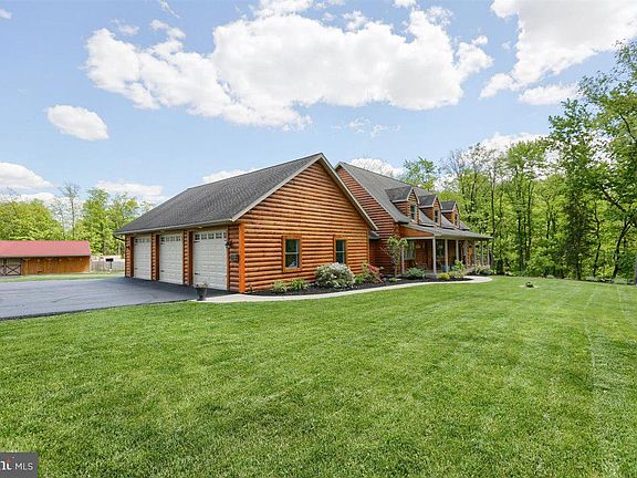 Welcome home to this exquisite custom built log home on 14+ acres with potential clean and green! This home w/ 3800 sq. ft. welcomes you w/ a newly paved driveway, hardwood floors throughout, lovely new staircase with cable railing, fresh paint throughout, beautifully appointed kitchen with granite counter tops, and waypoint cabinetry- lots of natural light as you have an amazing view of the property from your spacious kitchen windows. This 4BR 5 Bath home offers 5 car garage, 2 Master Suites/or In-Law quarters, offering cathedral ceilings, fireplace, hardwood floors, kitchenette,, Master Bath w/ heated tile floors, walk-in shower(handicapped accessible) leathered granite, and to top it all off a covered composite deck to have your morning coffee. The main level also boast an office/den, sunroom, Living Room with Fireplace, A Mama's dream Laundry room w/ room for 2 washers and dryers, new luxury vinyl flooring, and 2 full baths. The upper level has 3 BR ( 1 being master suite) 2 full baths and a large loft area with lots of potential uses. The lower level completes this home with a finished basement, another full bath and a massive storage area w/ built in shelving. This property is currently being used for horses- it contains 3 barns w/ ( 6000 sq. ft. under roof) 8 stalls( w/ potential for more), lighted 100x200 Arena, Roping Chute, Hay Storage, Tack Room, Feed Room and Dry Lot. 2 miles of Trails on property. Location, Location, Location- this home is where you feel like your at a retreat but only 5 minutes to town- Easy access to 283/230 Routes. Come see what this Ranchette is all about. Also, excellent hunting !!! Schedule your showing today!!!
