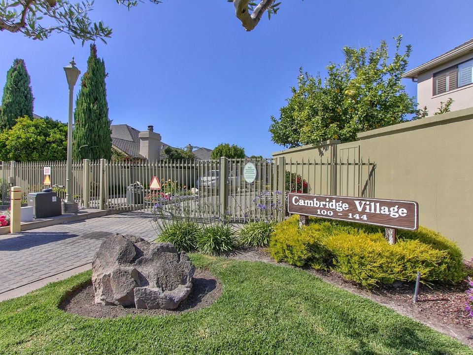 Bring Back the Sparkle to this desirable single-level end-unit in the private gated community of Cambridge Village in South Salinas. As you enter this home you will find a spacious living room with vaulted ceilings along with a gas fireplace. Livingroom flows into a dining area with sliding doors that lead out to a completely fenced private patio. The original kitchen has tile countertops and plenty of cabinets. Good size primary suite with its own private bath and sliding doors to concrete patio area. The third bedroom can also be used as an office/den. Two-car attached garage along with extra parking through-out the complex. Amenities include security gates, pool, spa, tennis court and more.