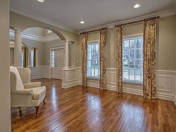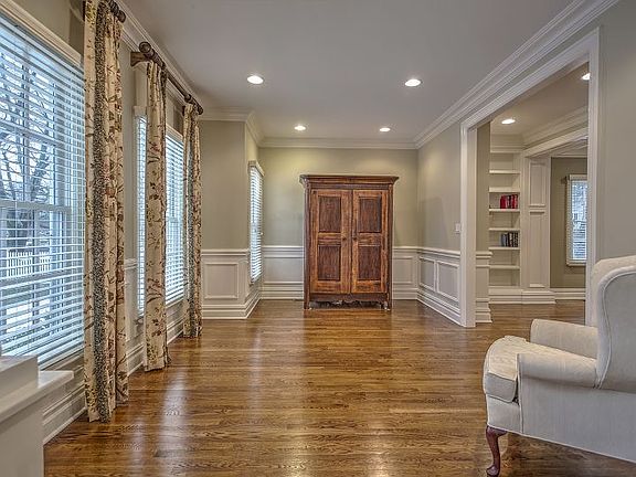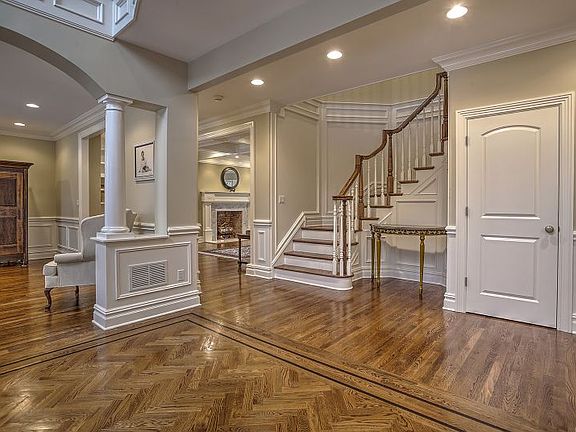 This classic Colonial in sought-after Chatham Township sits on nearly a half acre of level property near schools, parks, swim and golf clubs, shopping and transit. It provides all the best aspects of suburban living with the many conveniences Chatham has to offer so close to home. With over 4,500 square feet of well-appointed living space, substantial interiors are detailed with extensive molding and hardwood floors throughout, while nine-foot ceilings, recessed lighting and recently-painted rooms in a neutral color palette create a bright, welcoming feel. As you enter the elegant two-story foyer, you are welcomed by the gently curving staircase featuring a second floor balcony, Palladian window, and beautiful inlaid hardwood floor. Living and dining rooms both feature traditional millwork, trim paneling and stately columns creating a formal yet inviting tone. The spacious, open kitchen is anchored by a large center island topped in gleaming granite. Floor-to-ceiling cherry wood cabinetry is designed with crown molding and glass transoms. Stainless steel KitchenAid appliances, a Villeroy & Boch farm sink and an accent tile mural are among the additional amenities. There is also a five-foot storage pantry plus a wet bar in this stunning kitchen. Handsome woodwork distinguishes the family room offering a coffered ceiling, built-in bookshelves and a full masonry fireplace encased in marble tiles and a wood mantle. French doors in the kitchen and family room lead to a sunny patio enhanced by a built-in grill. The first floor also has a guest bedroom or home office adjoining a private, full bath. Upstairs, the master suite presents a vaulted ceiling bedroom, generous sitting room with a gas fireplace flanked by built-in shelving, and two walk-in closets. A luxurious master bathroom includes dual stone-topped vanities, a jetted tub, and a stall shower with a rain shower head. Four additional bedrooms and three full baths are also located on the second floor. Each of the bedrooms has ample storage space with professionally-installed closet systems. Casual living space on the finished lower level features a large recreation room, yoga/exercise room, full bath, as well as a storage room with floor-to-ceiling shelving and secondary storage room. Completing this appealing Colonial are a level and fenced yard served by a built-in sprinkler system and a three-car garage.