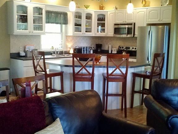Listen to the rippling river and enjoy watching wildlife from your patio, screened porch or balcony. This 3 BD home features an open floor plan, master BD on the main, 3 1/2 updated baths (master BA has jetted tub and separate shower), wood burning FP in great room and free-standing gas FP stove in walkout finished basement with large living area and full bath/laundry. Two additional BD's on 2nd level with family room and home office. Kitchen has eating bar, pantry and private deck, just perfect for your morning coffee and grilling. Within walking distance to parks, Sandy Bottom Golf Course and Bridgewater College.