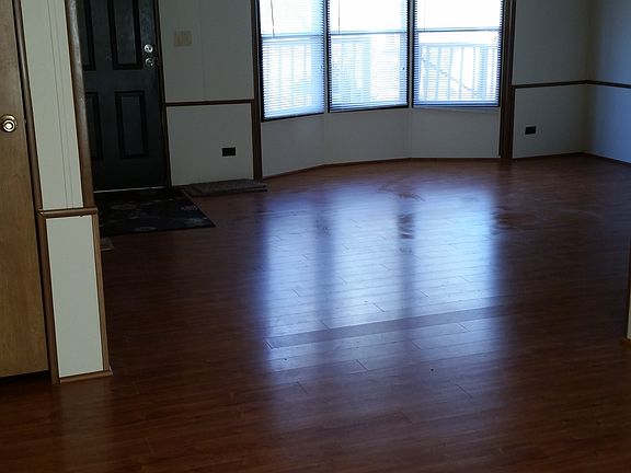 1985 Modular home for sale. Very spacious home. Smoke free. New flooring, freshly painted thru out. Kitchen is fully equipped with lots of cabinetry. Large dining room & built in china hutch. Livingroom with fireplace and sliding glass door leading to back deck. Formal living area with Bay window. Large master suite features a private bath w/walk in closet & step in shower. 2 large bedrooms & main bath are located at opposite end of home. Utility room conveniently located off kitchen includes washer & dryer. There is a good sized storage shed too. Newly built porch entering the home. Close to shopping center and schools. This home is available now!