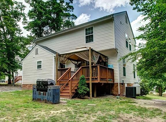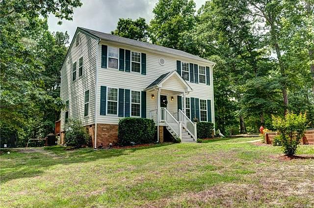 Looking for back yard privacy? You've found your home! This spacious 2-Story home on a .93 acre Cul-de-Sac lot has a nice front porch, Huge Family Room with portable Gas Fireplace (you can move it anywhere in the room that you choose!) Gleaming Hardwood Floors on first floor, Ceiling Fans all over, Eat- In Kitchen with Oak Cabinets and Pantry, Formal Dining Room, Playroom or Living Room and plenty of window blinds already installed for you! 1/2 bath downstairs is convenient for guests yet out of the way of main areas. Rear Deck with screen gazebo overlooks a private oasis of things to do... maybe take a walk down to the creek, build a treehouse, build a fire, watch the birds, enjoy the wildlife or just relax! Upstairs you'll find your bedrooms including the large sized Master with vaulted ceilings, ceiling fan, his/her closets (one is a walk-in), attached master bath with tub and shower. 2 additional large bedrooms with carpet and cfans. 2 Detached Sheds (they are AS-IS), whole house water softener/filtration installed in the crawl space, extra storage with attached shed too! This has alot to offer and still close in to Mech or Richmond, just over the Hanover/King William line!