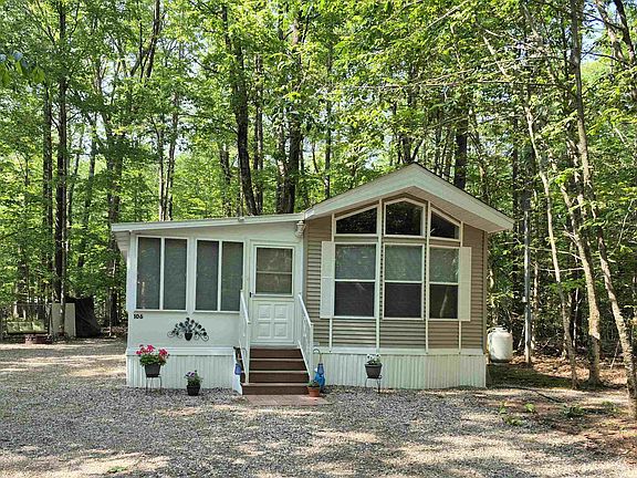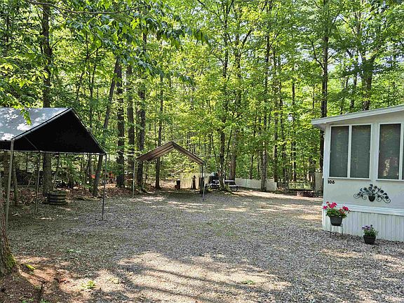 Welcome to Lake Forest Resort, one of Wakefield's best kept secrets located along the pristine shore of Great East Lake. LFR is a seasonal mixed-use condominium campground that welcomes residents age 50+, golf lovers and outdoor enthusiasts. Set on 100 wooded acres, LFR offers well-spaced sites with privacy, as well as recreational and social activities for adults. 106 Oak Lane is home to a beautifully maintained park model that has been well cared for. Inside you will find living/dining/kitchen area, full bath and bedroom with impressive storage. The attached multipurpose room and screened-in porch add 340 more sq. ft. living space. Outside, you will find 2 car ports, a storage shed, additional storage units, BBQ & dining area, fire-pit and a deck on the back of the unit to enjoy your morning coffee. 106 Oak Lane is being sold fully furnished so all you need to do is unpack and enjoy! Golf enthusiasts will love the Cayman Golf Course which winds through beautiful tree lined fairways adjacent to the RV and cabin sites. LFR has two miles of well-kept and shady winding roads ideal for walking or biking. LFR offers 200' of private waterfront. Here you will enjoy the extensive seating area to take in the spectacular views of sparkling Great East Lake and the calls of the local Loons. There is a private boat launch, canoe/kayak storage racks and day docks. Assisted showings are required beginning 6/7/2025. Do not miss your chance to be part of this truly unique community!