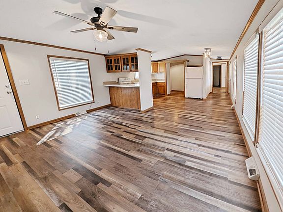 This meticulously maintained 3-bedroom, 2-bathroom mobile home offers low maintenance and modern comforts. This home comes fully equipped with all kitchen appliances and washer and dryer. Recent upgrades include a new roof and furnace within the last 5 years. Outside, you'll find a heated three-car detached garage, providing ample space for parking and storage. Additionally, a storage shed offers even more room for your belongings. Relax or entertain on the back patio, overlooking the fenced-in backyard, perfect for pets or outdoor activities. Don't miss out on this opportunity for comfortable living in a well-cared-for home.