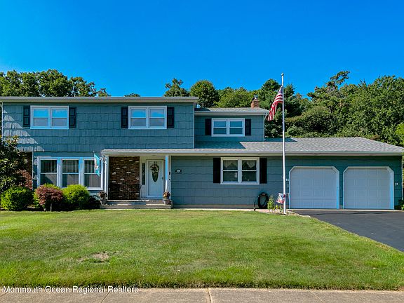 Candlewoods LARGEST home - the Kilmer Colonial! The home has been modified to 4 B/R & can easily be restored back to the original 5 B/R plan! Updates include new pool liner in 2022, HVAC system in 2021. Roof, main bath, hardwood flooring, water heater, granite counter, stairs/railing in 2015. The bedrooms are generous in size & include ceiling fans & H/W floors. The expanded 25' family room includes windows on 2 sides, H/W floors, a fireplace & enough room for a Brady Bunch sack race. Eat-in kitchen w/granite, all appliances, double wall oven & 42'' cabinets. Property goes about 25' beyond the fence and backed to a private wooded area. Heated in-ground pool & deck w/motorized awning. Plenty of storage includes 2 car garage w/storage above, an unfinished basement & large rear shed