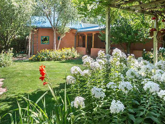 Tucked away in the valley of Canoncito, just minutes from Santa Fe, is this unique property located at the very end of Old Canoncito Road. This lovely northern New Mexico ranch home, studio and multiple gardens is situated on 13.7 lush acres which was once part of the old Bishop Lamy Land Grant. This 3-bedroom home is nestled among mature trees and is constructed of mostly adobe and has a pitched propanel roof. American Clay plaster is abundant throughout. The home is adjacent to the east and north sides of the Pecos Historical National Park and the north fork of the Galisteo Creek flows seasonally filling a nearby pond on the property. Imagine riding your horses from your home directly into thousands of acres of parkland! Or, imagine your own hobby farm!! A self-contained sanctuary...an escape from the stresses of life... but only minutes from town. This is a MUST-SEE home!!