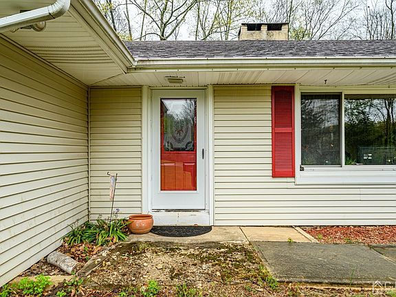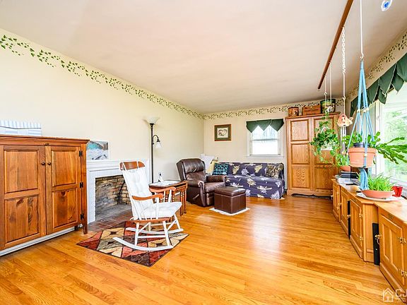 Spacious Ranch nestled on over 2 acres of private land! 3 Bedrooms, 1 Full Bath and so much potential at this one. Extra large Living Room offers beautiful Hardwood Floors, huge picture window that brings in a ton of sunlight, and wood burning fireplace. Spruce up the EIK with designs that fit your taste! Plenty of cabinetry, lots of counter space + a breakfast counter, 2 ceiling fans, tile backsplash and more. Primary Bedroom is huge and the 2 additional Bedrooms are just as generously sized. Neutral tones all through really brighten up the home. Full Bath w/Jacuzzi tub! Full basement has tons of storage. Rainsoft reverse osmosis Water Filter/Softener system and a dehumidifier, too. The detached Oversized garage built in 1995 offers an intercom to the home and is the perfect hang out space. The yard is infinite! So much space to build or create the outdoor oasis of your dreams. 3 car wide drive gives ample parking space. This is a great opportunity! Come and see today.