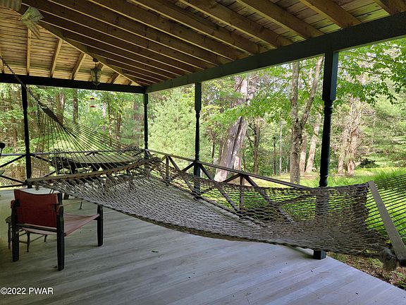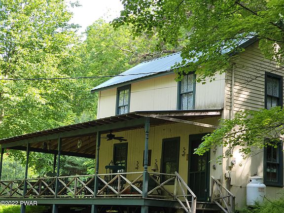 Be one with nature in this quintessential ''Cabin in the Woods''. Built as a fishing cabin in 1910, this three-season, two-bedroom cabin has been updated to provide modern conveniences without compromising the integrity of the original structure. The metal roof, claw foot tub, wood walls and floors, outdoor shower, galley kitchen, and cozy living room with wood burning stove add to the charm of this unique dwelling. The 500 square foot covered porch with tongue and grove cedar flooring and ceiling fan, provides a perfect venue for outdoor entertaining and relaxing. Enjoy seasonal views of the Delaware River and the pristine, 12+ acres that accompany the cabin. Walk in the woods, head to the river to enjoy the Millrift beach, or launch a canoe, boat or raft and float down the Delaware Rive, Beds Description: 2+BED 2nd, Baths: 1 Bath Level 1