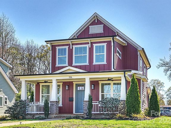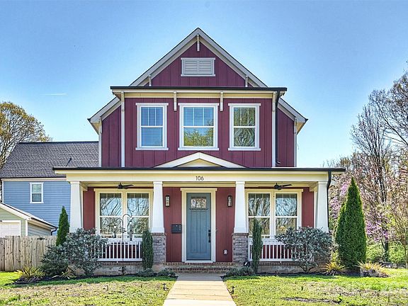 Minutes away from Elizabeth, Plaza Midwood, & Uptown, step into this stunning craftsman bungalow. This open floor plan has white oak floors, an abundance of windows, and high ceilings up and down. The gourmet kitchen with marble countertops and island flows into the great room and dining area. Natural light pours into every room. The primary suite is on the main level and has a spa-like bath and water closet. The upstairs has a tremendous bonus room. All bathrooms showcase sleek quartz countertops, adding to the home's sophisticated charm. Covered back entrance. Laundry room. The backyard features lovely perennial beds and a large stamped concrete patio with a knee wall for extra seating, surrounded by a privacy fence. Other features include a sizable storage shed and an expanded driveway. Only a 5-minute walk to the Briar Creek Greenway. Be impressed by this home - its quality abounds on a sunny corner lot in Elizabeth Acres.