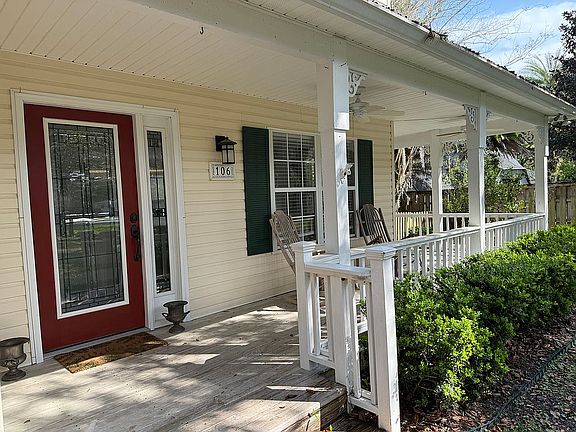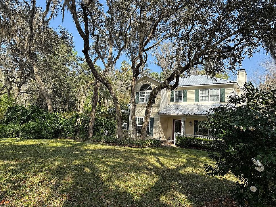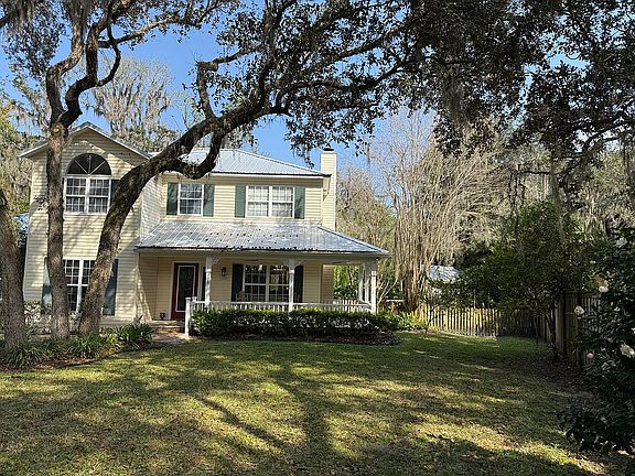 The beauty of the country with the convenience of the city. Relax and unwind as you follow along the farmlands to reach this impeccably maintained 3BR/2.5ba traditional style house on the navigable Dog Branch Creek in East Palatka. On a sweet cul-de-sac street that ends on the St. John's River. You will immediately notice the beautiful landscaping as you walk to the front door, and you'll feel the home's quality the minute you step inside. With all the features you expect in a traditional home. Downstairs you'll find the house has an open floor plan including an office, family room, dining room and a beautiful kitchen with center island. Three bedrooms upstairs, including a lovely primary suite with its own private upstairs deck. There is lovely wood tile floor throughout the house. And wait until you step outside onto the large sunny screened back porch that overlooks a fenced, very private and wonderfully landscaped backyard with fruit trees and raised beds for future vegetable/flower gardens. Add to that an oversized 2 car garage with laundry area and you've got everything you need to make this house your home. It truly does have it all! Come see it for yourself today