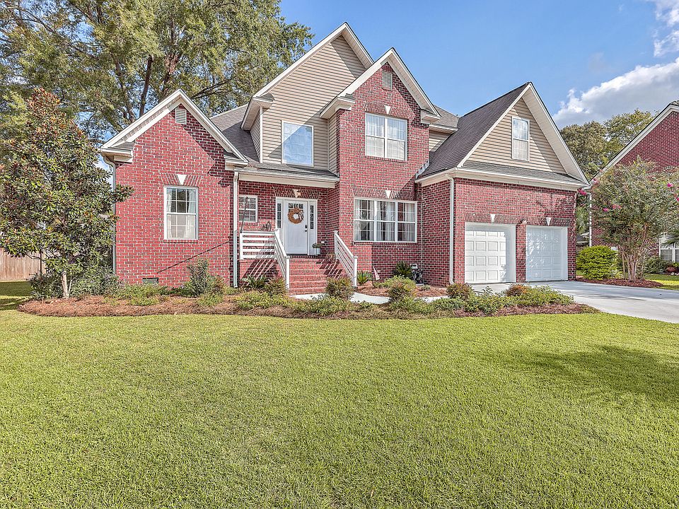 This stunning 2-story brick home, located in the highly desirable Hamlets community of Crowfield Plantation, sits on a quiet cul-de-sac lot. With fresh landscaping, a welcoming front porch, a private fenced backyard, and multiple outdoor spaces including two decks and a patio, this home is perfect for both relaxation and entertaining. Recent updates include fresh paint, new HVAC units and mini-split, updated fans and light fixtures, and refreshed landscaping. Inside, you'll be greeted by a grand entryway, soaring ceilings, and a cozy gas log fireplace in the family room. The spacious kitchen is a chef's dream, featuring expansive Silestone countertops, a stylish tile backsplash, and an abundance of cabinetry, making it ideal for preparing meals and hosting gatherings. The generous master suite is conveniently located on the main floor and includes a large bedroom, a walk-in closet, and a luxurious en suite bathroom with a soaking tub, shower, water closet, and double vanity. Additionally, the main floor offers a sunny sunroom, a flexible space that could serve as a dining room or office, and a cozy keeping room adjacent to the kitchen. Upstairs, you'll find three comfortable guest bedrooms and a Jack & Jill bathroom. This lovely home is ideally located in the heart of Goose Creek, close to shopping, dining, and entertainment. Crowfield Plantation amenities include walking trails, lush green spaces, golf, a park/playground, and much more. This home is truly a must see - schedule your tour today! If buyer uses Carolina One Mortgage, Carolina One Mortgage will contribute $2,100. This contribution from Carolina One Mortgage will be reflected on the settlement statement as a Lender Credit and applied towards buyer's closing costs. This credit is in addition to any negotiated seller concessions.