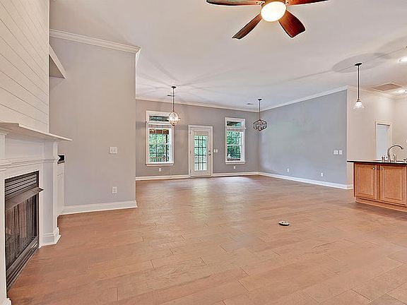 Private and Pristine on a one of a kind lot! Enjoy your summer evenings on your back porch with tranquil woods behind you, pond views and picture perfect sunsets. This home features beautiful upgraded laminate wood floors and new light fixtures throughout. As you enter the foyer, you are greeted with 10' ceilings and both formals on either side accented with crown molding and plantation blinds. The gourmet kitchen is open into the family room and perfect for entertaining.The gourmet kitchen has it all with stainless steel appliances, granite countertops and a center island. The first floor Master suite features a tray ceiling, along with his and her walk-in closets. The private Master bath boasts ceramic tile, his and her sinks, a jetted tub as well as a separate walk-in shower. The Master Bedroom has expansive views of the amazing backyard and plenty of natural sunlight. The large family room is complete with a gas fireplace framed with shiplap. There are 3 large spare bedrooms and 2 adjoining baths. (This all brick, single story, custom built, home on a cul-de-sac lot provides parking for two cars in addition to an abundance of storage space and extra space to build a detached garage if desired. Enjoy all that The Hamlets of Crowfield Plantation has to offer including a 18 hole Championship golf course, fishing dock, swimming pools, walking trails, tennis courts and playgrounds. Don't miss this opportunity to live in The Hamlets with a View!