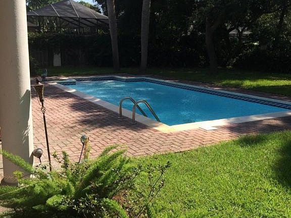 Beautifully updated 3 bedroom, 2 bath Palm Bay pool home! Back yard is fenced for maximum privacy. Exterior of home was repainted in 2016, and brand new water heater just a few weeks old. Kitchen and bathrooms were renovated and include granite countertops, newer appliances, custom tiled backsplash, and gorgeous wood cabinetry. Living room area includes floor to ceiling built ins, fireplace and a bar area. Master bathroom is like a mini spa! This home is perfect for all! Empty nesters, retirees or a big family. Plenty of space for everyone. And you will love the spacious backyard and inviting pool that can be accessed from both living room and master bedroom. All info is approximate and should be verified by buyers if important.