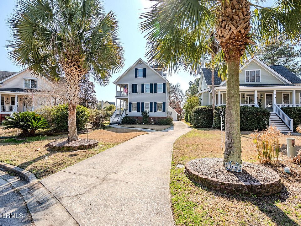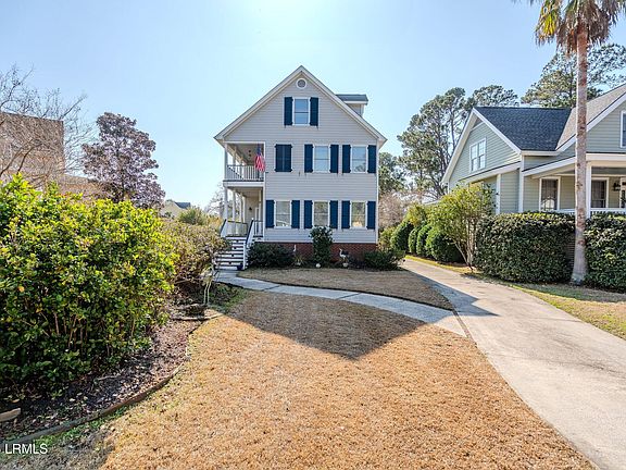 Discover the charm of this Charleston-style home nestled in the picturesque community of Battery Point. This lovely property is situated on one of the largest 1/4 acre homesites in the area offering beautiful, uninterrupted views of a tranquil pond from a quiet and peaceful cul-de-sac. The double-decker front porches invite you to relax and enjoy the gentle breezes and scenic surroundings. The 224 square foot screened porch, adorned with Sunbrella shades, ceiling fans and durable tile flooring, offers a perfect space for outdoor entertaining or simply unwinding with a good book. Step inside to discover the main level where the beautiful red oak hardwood flooring, 9-foot ceilings, recessed lighting and generously placed windows all create a bright and welcoming ambiance. The kitchen is equipped with white raised panel cabinetry, a high-quality gas oven/range, a single bowl Swanstone sink, and ample storage and work space to accommodate all of your culinary needs. Designed with practicality and modern living in mind, the home is equipped with a tankless Rinnai hot water heater, ensuring you have a continuous supply of hot water while being energy-efficient. This home boasts an abundance of noise reducing, energy saving insulation in between each floor and a double insulated ceiling on the 3rd level. You will love the generous storage and closet space throughout the home providing convenience and organization. The 2nd floor boasts a lovely master suite with a walk-in closet, private bath and access to the 2nd floor porch. The secondary bedrooms share a nice hall bath and one of them also has access out to the 2nd floor porch. The 3rd floor presents a versatile 4th bedroom, which can be adapted to suit your needs, whether as a guest room, home office, creative space or even divided into two separate spaces. As you exit out back through the spacious laundry room, you will appreciate the durable Trex composite decking and stairs leading down to a charming paver patio for outdoor gatherings and cookouts. There is a versatile 20 x 15 workshop/shed, complete with power, attic storage, double access doors, and a second refrigerator, providing ample space for hobbies, projects, or additional storage. There is also a delightful 6 x 8 playhouse out back that could be used as a gardening shed. The zoned irrigation system helps maintain the healthy grass and established landscaping and there are operational storm shutters on the windows. This home is wired for an ADT security system and Direct TV and the Ring system will convey to the new owner. The seller is offering a generous $5,000 closing cost allowance to the buyer at closing. This home has been lovingly maintained inside and out and seamlessly combines elegance, comfort, and practicality, making it a truly exceptional find in a prime location. Accordingly, it will convey in "As Is" condition. Battery Point offers a variety of neighborhood amenities to include a deepwater dock and boat launch, waterfront nature trails, a swimming pool, tennis courts, playground, clubhouse and a lovely outdoor gazebo area. This coveted community is centrally located near shopping centers to include the new Publix grocery store, military bases, schools, the Spanish Moss Trail and Historic Downtown Beaufort. Whether you're seeking a peaceful retreat or a vibrant community, 106 Palmer Lane offers the best of both worlds, inviting you to experience the epitome of Southern living.