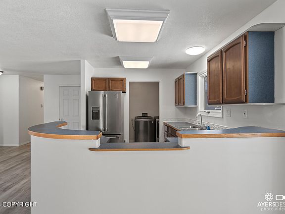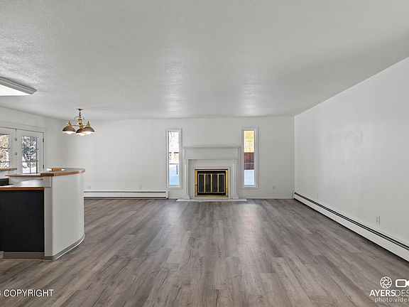 This charming 3-bedroom ranch house in a desirable Kenai neighborhood has brand new luxury vinyl plank flooring throughout. The open living area boasts a cozy fireplace and french doors that open to a covered back porch and large yard. All three bedrooms are spacious, and the primary has a convenient half bath. Don't miss out! Add your personal touch and call this ranch house your home.